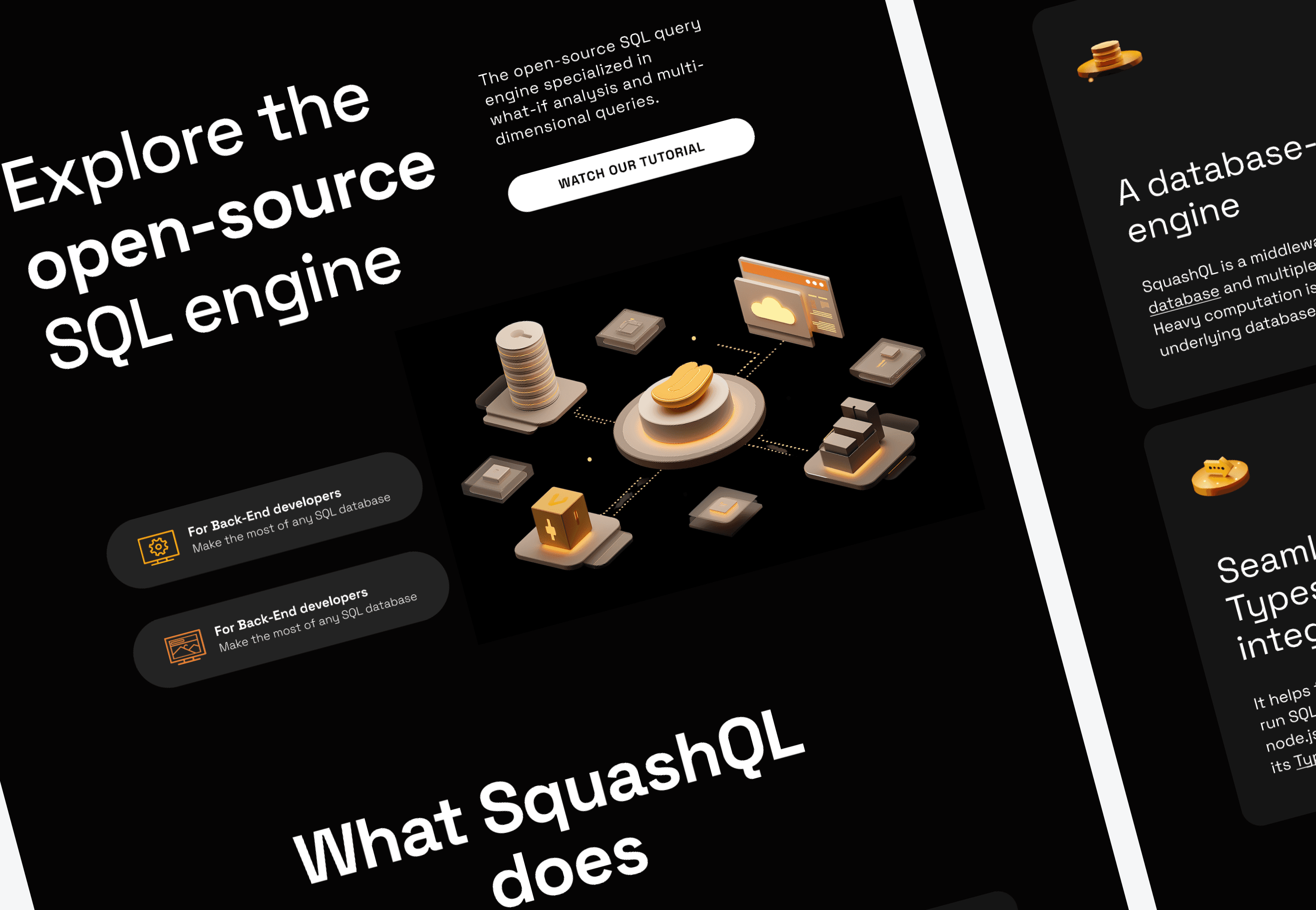 Full visual identity and website for SquashQL, an open-source SQL engine built for multidimensional analytics. The goal was to design a modern and trustworthy tech identity that reflects the product’s power and simplicity — a bridge between complex data systems and intuitive front-end experiences “Bringing light to data”.